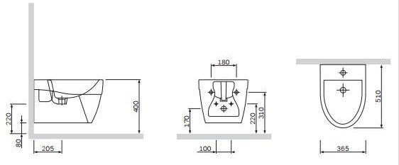 - Габариты унитаза (ВхШхГ): 355х365х510 мм