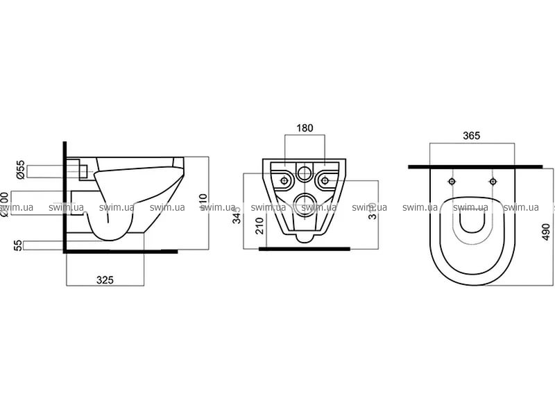 - Габариты унитаза: 490х365х410 мм