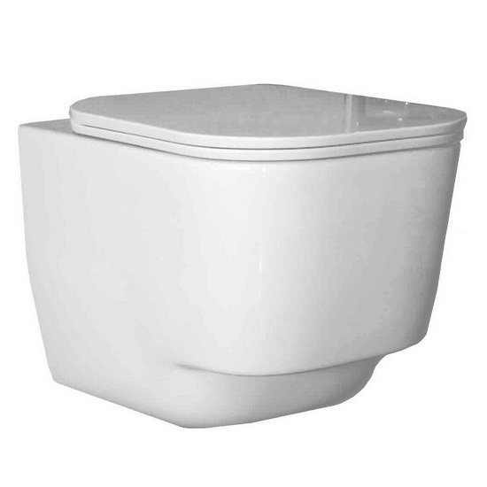 Подвесной унитаз в комплекте с специальным крепежом. Установка с универсальным кронштейном для подвесной сантехники. Может быть укомплектована сиденьем с системой плавного закрывания крышки.