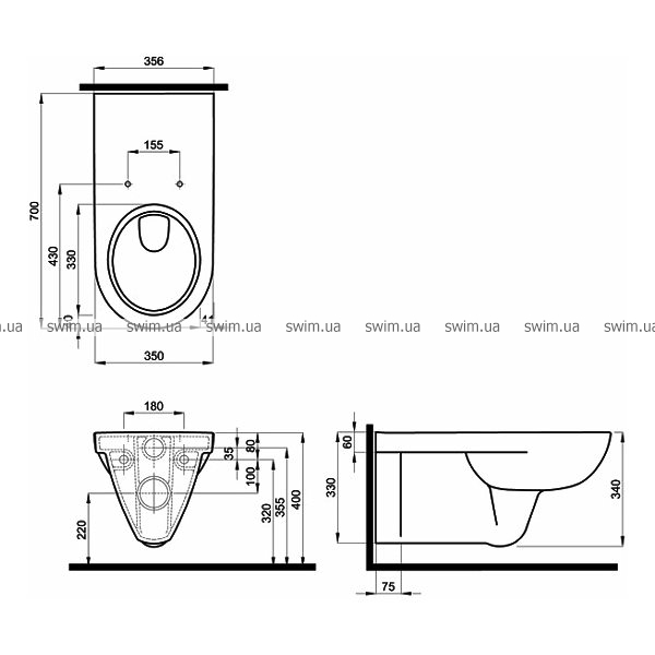 - Размер: 350х700х340 мм