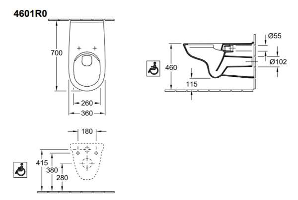 Унитаз подвесной Villeroy & Boch O.Novo 4601R001 для инвалидов