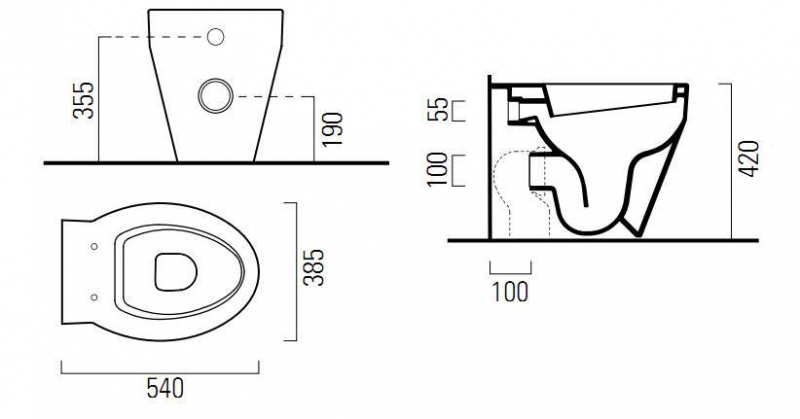Унитаз со сливом в стену (P) трансформируемым в пол (S) через отводящую трубу.