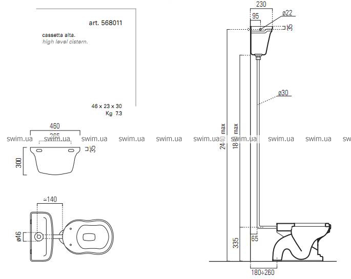 - размер с бачком и механизмом для бачка: 2440х820х460 мм