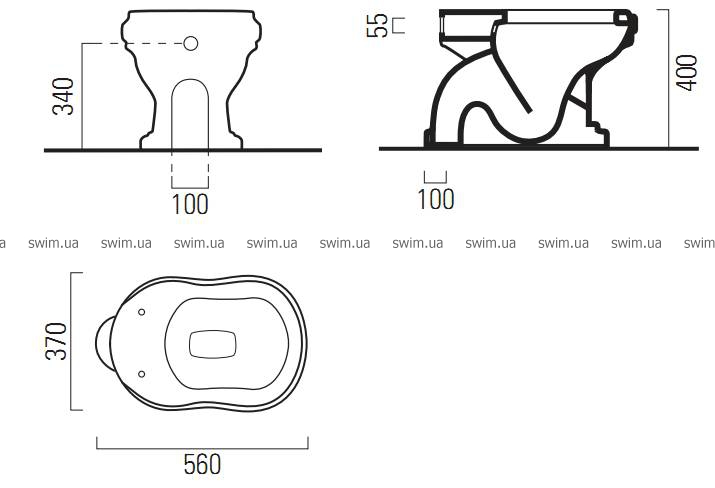 Унитаз со сливом в пол (S). Может комплектоваться с сидениями и верхним бачком (568011)