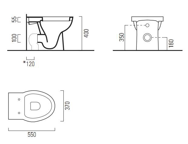 Унитаз "БЕЙСИК+" со сливом в стену (P) трансформируемым в пол (S) через отводящую трубу