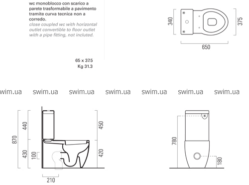 - вес унитаза: 31,3 кг