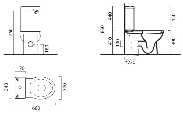 - размер без бачка: 660х410х370 мм