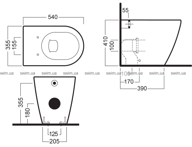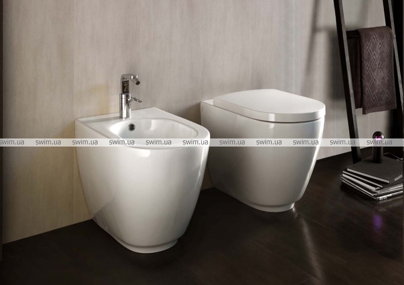 Унитаз с универсальным сливом, в комплекте с сиденьем (YXKD), сливным коленом и крепежом. Приставная установка. Может комбинироваться со смывными бачками серии Monolith