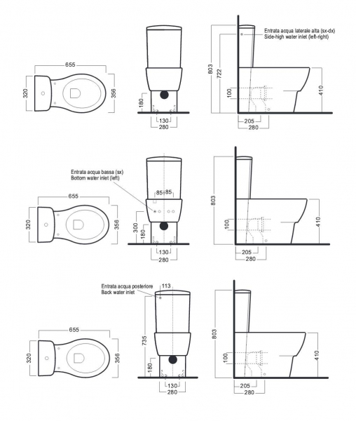 Моноблочный унитаз с универсальным сливом для пристенной установки. Может комбинироваться с сиденьем с механизмом плавного опускания (Y0TR) или без него (Y0TE). Должен быть дополнен смывным бачком с боковым верхним, нижним или задним подводом воды.