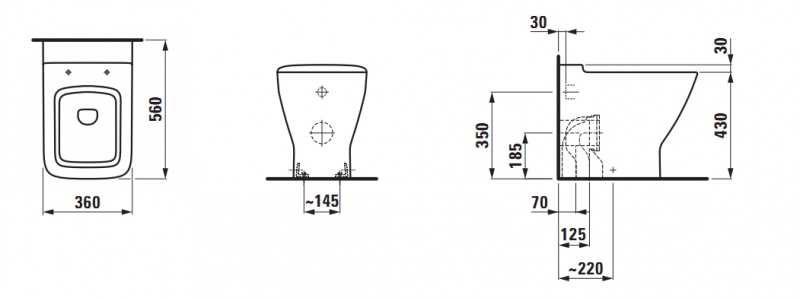• Размер унитаза без бачка: 360x560x460 мм