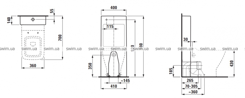 • Размер унитаза с бачком: 980х700х400 мм