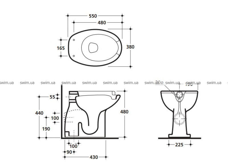 - Унитаз с функциями биде для подключения слива в пол "S"