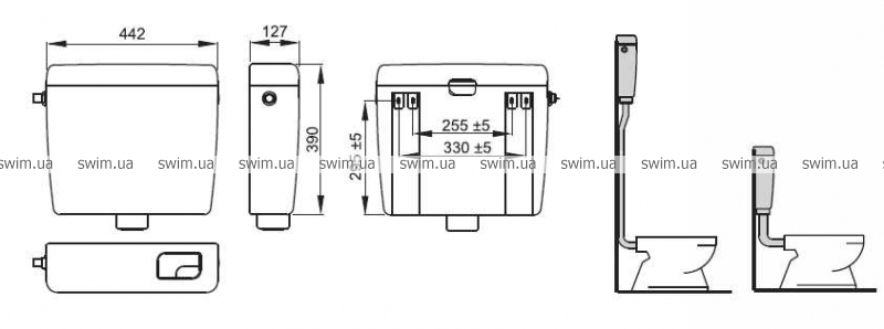 - Универсальное крепление: своим расстоянием и формой подходит к продаваемым бачкам