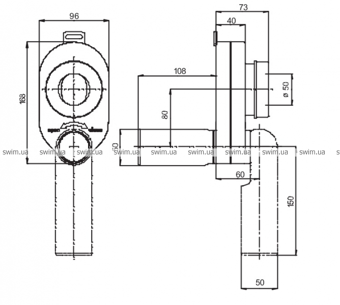 Вакуумный сифон для писсуара DN50/50 Sanit 31.405.00..0000