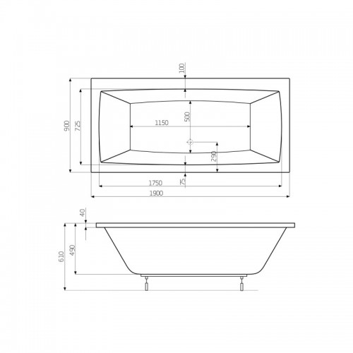 VITA - Прямокутна акрилова ванна з ніжками A24T090000