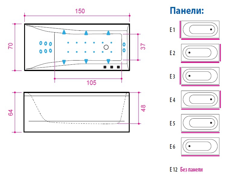 - Включает переднюю панель (панели) и комплект слива- перелива