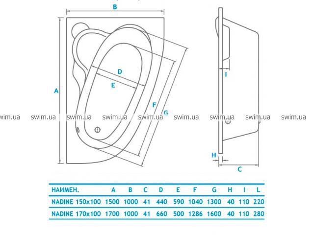 Угловая асимметричная ванна Nadine изготавливаеться в правом и левом варианте. Имеет достаточно большой габаритный размер и при этом смотриться аккуратно. Овальная форма внутреннего пространства ванны украшена красивым изгибом под полочку для банных пренадлежностей. Акриловая ванна Nadine не только удобна в эксплуатации, но являеться красивым элементом дизайна интерьера.