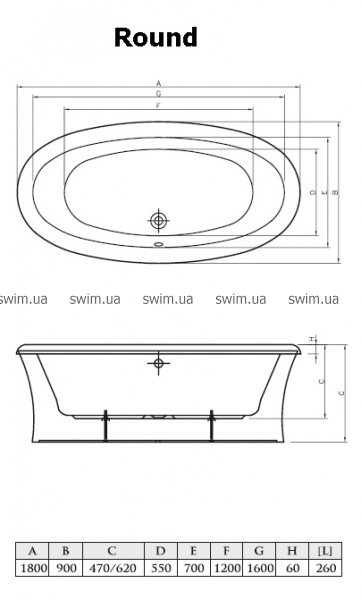 Неординарная ванна Round 180х90 имеет овальную форму. В ней сочетается стиль, красота, простота и удобство. Ванна Design Plus 194х100 имеет большой объем внутреннего пространства, что позволяет наслаждаться водными процедурами. Данная ванна уникальной овальной формы украсит любой дизайн интерьера ванной комнаты.