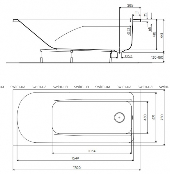 - Ванна в комплекте с ножками и монтажным комплектом SNC1