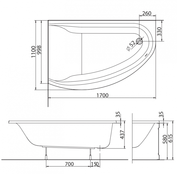 - Ванна в комплекте с ногами с монтажным комплектом SN8