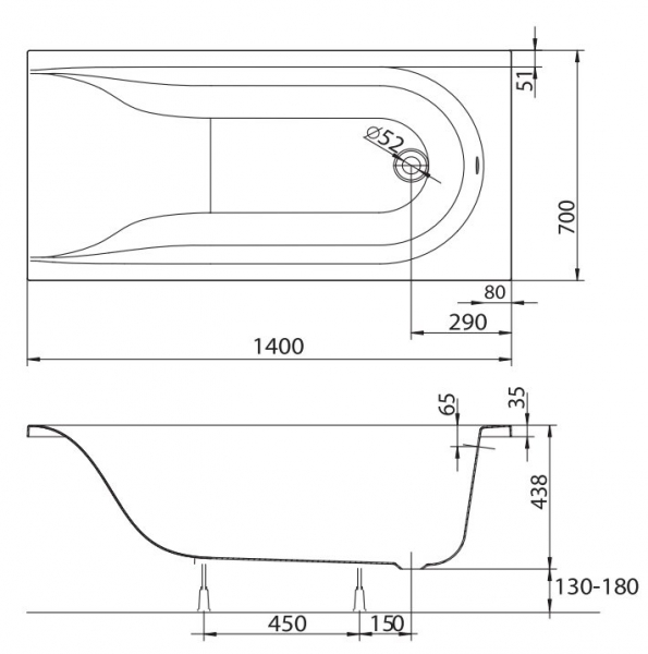 - Ванна в комплекте с ногами с монтажным комплектом SN0 и подголовником SP006