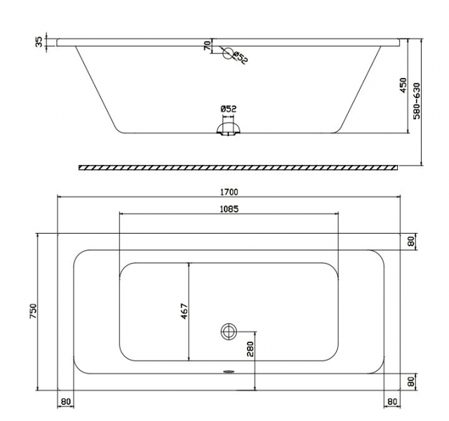 - Ванна в комплекте с ногами с монтажным комплектом SN7