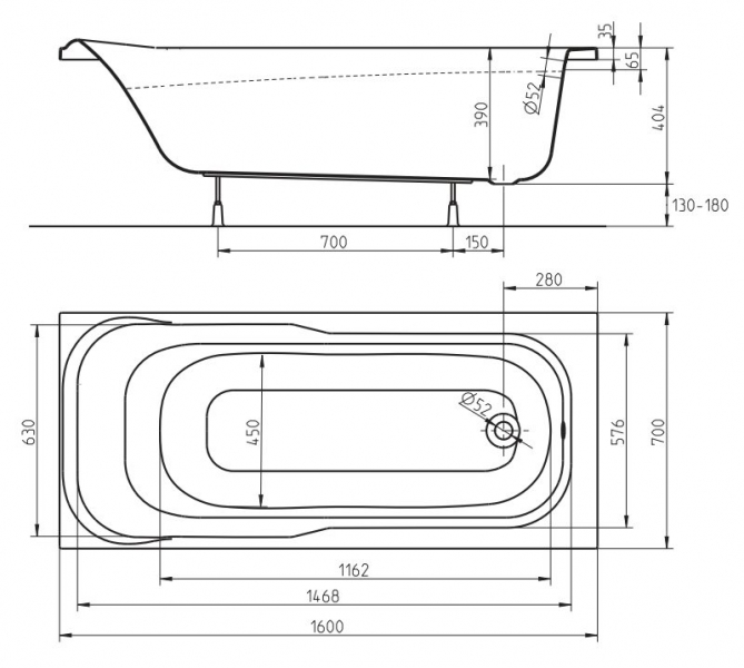 - Для комплектации с универсальной фронтальной панелью 160 см UNI4 PWP4460000