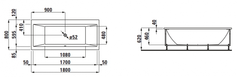 Ванна акриловая Laufen Pro 2.3295.1.xxx.621.1 180х80 см