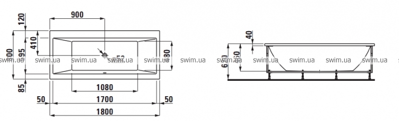 Ванна акриловая Laufen Pro 2.3295.6.000.057.1 180х80 см