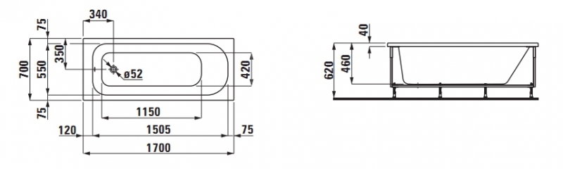 Ванна акриловая Laufen Solutions 2.2250.5.000.605.1 170х70 см
