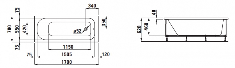 Ванна акриловая Laufen Solutions 2.2250.6.000.000.1 170х70 см