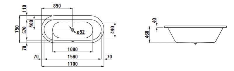ГоловнаВанниLaufen → Ванна акриловая Laufen Solutions 2.2251.0.000.000.1 170х75 см