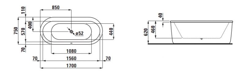 Ванна акриловая Laufen Solutions 2.2251.2.349.055.1 170х75 см Ванна акриловая Laufen Solutions 2.2251.2.349.055.1 170х75 см