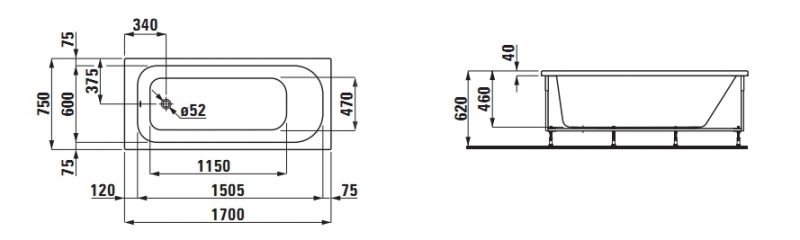 Ванна акриловая Laufen Solutions 2.2350.5.000.645.1 170х75 см