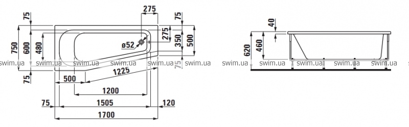 Ванна акриловая Laufen Solutions 2.2352.1.000.000.1 170х75 см