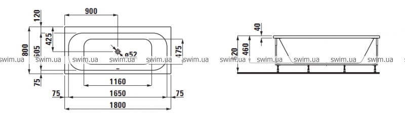 Ванна акриловая Laufen Solutions 2.2450.5.000.000.1 180х80 см