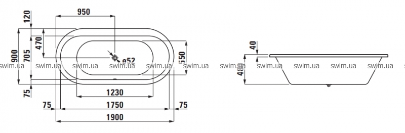 Ванна акриловая Laufen Solutions 2.2551.0.000.000.1 190х90 см
