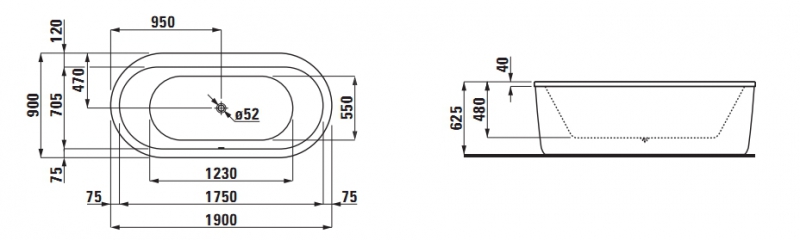 Ванна акриловая Laufen Solutions 2.2551.2.000.000.1 190х90 см