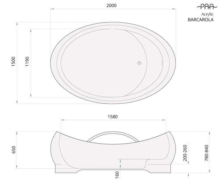 ГоловнаВанниPAA → Ванна акриловая PAA Barcarola VABAR/XX 200х150 мм