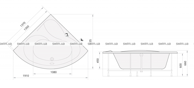 Угловая акриловая ванна PAA Camilla(1370x1370х660). Производитель акриловой ванны Camilla фирма PAA использует в производстве специальный санитарный акрил фирмы ATOGLAS (Нидерланды). Особенностью этого материала есть то, что благодаря ему акриловая ванна PAA Camilla имеет очень гладкую, гигиеничную и надежную поверхность, не желтеет и не меняет цвет на протяжении 25 лет, тем самым обеспечивая длительный срок службы ванны. Все акриловые ванны РАА имеют надежный металлический каркас, что дает дополнительное ребро жесткости, поэтому они не прогибаются и не деформируются ни от веса человека, ни от изменения температуры воды. За отдельную цену Вы можете приобрести слив-перелив и переднюю панель.