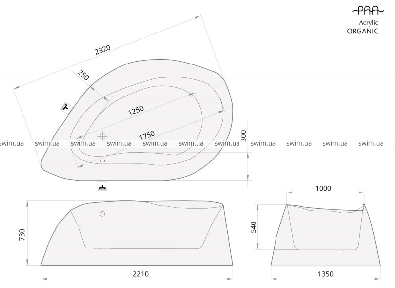Ванна акриловая PAA Organic VAORG/XX 221х135 мм