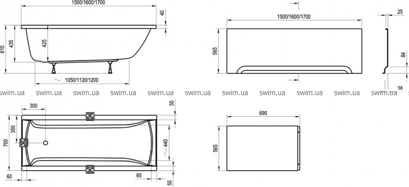 К ванне можно докупить аксессуары (опору, сточный комплект для ванны), по необходимости, практичное оборудование – переднюю и боковую панели, подголовник, универсальную нержавеющую ручку, штору для ванны (VS2, VS3, VS5, PVS1, BVS1, BVS2, CVS2) или двери для ванны AVDP3.
