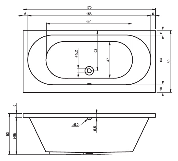 Ванна акриловая Riho Carolina BB53 170х80 см