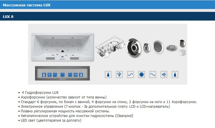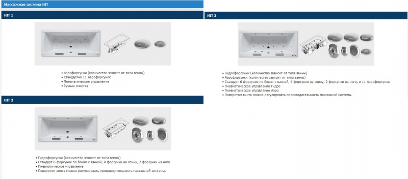 ***Ванны RIHO могут быть оборудованы одной из массажных систем следующих серий: HIT, TOP, PRO, LUX (Aero,Hydro, Aero/Hydro). Наценку за комплектацию уточняйте у менеджера магазина.