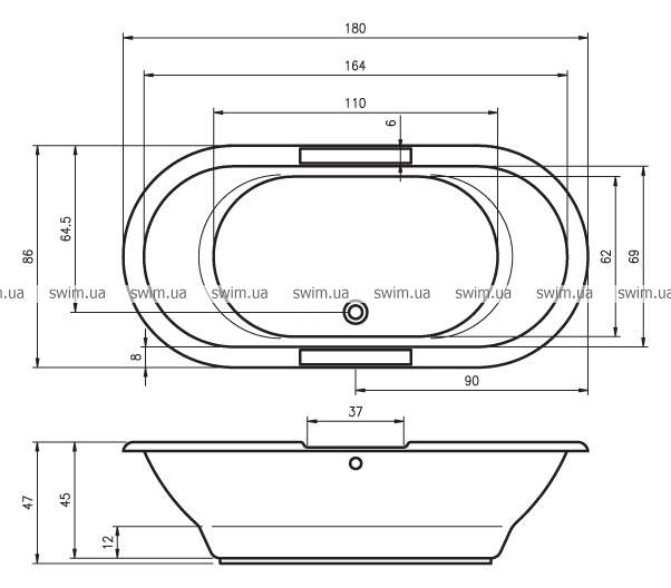 RIHO Seth WP 180x86 - это овальная акриловая ванна. Очень красиво будет смотреться в более просторных ванных комнатах. Ванна изготовлена из 6 мм. акрилового листа с антибактериальным свойством LUCITE Microban. Стандартная комплектация включает саму ванну, ножки и комплект креплений к стене. Данное изделие имеет симметричную форму и центральное расположение слива-перелива. Ванна предназначена для установки в подиум. Для любителей гидромассажа, ванна может быть укомплектована различными видами гидромассажных систем. К изделию можно докупить различные ручки, специальный подголовник (для установки подголовника предусмотрен специальный выступ) и много прочего. Следует отметить, что гарантия на ванны Riho голландско-чешского производства составляет 10 лет. Чтобы добавить в Ваши водные процедуры немного роскоши и комфорта, Вам потребуется RIHO Seth WP 180x86.