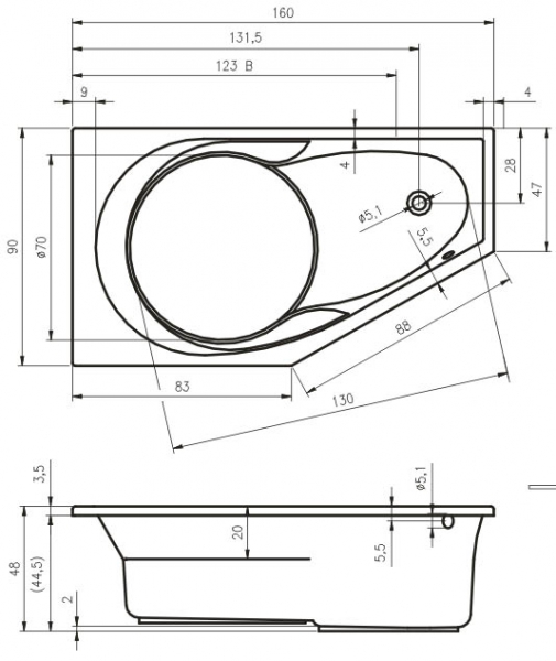 Акриловая угловая асимметричная ванна RIHO YUKON R160 - красивая и удобная она обретет свое место даже в не очень больших ванных комнатах. . Ванна изготовлена из 6 мм. акрилового листа с антибактериальным свойством LUCITE Microban. Стандартная комплектация включает саму ванну, ножки и комплект креплений к стене. Эта великолепная ванна предназначена для установки в подиум. Для любителей гидромассажа, ванна может быть укомплектована различными видами гидромассажных систем. К изделию можно докупить различные ручки, специальный подголовник (для установки подголовника предусмотрен специальный выступ) и много прочего. Надежность и долговечность изделию обеспечивают высококачественные материалы и современные технологии, использованные при ее изготовлении. Следует отметить, что гарантия на ванны Riho голландско-чешского производства составляет 10 лет.