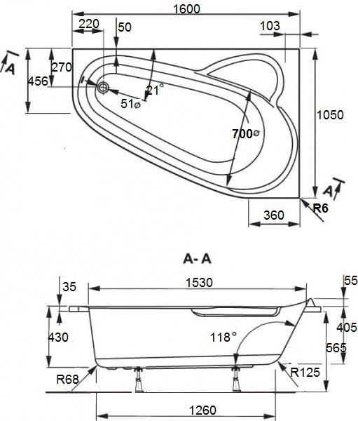 Практичная ванна, которая совершенно вписывается в простор небольших ванных комнат и является самым продаваемым типом ванн.