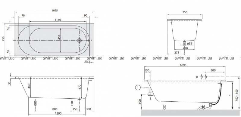 Ванна акриловая Villeroy&Boch O.Novo UBA170CAS2V-XX 170х75 см
