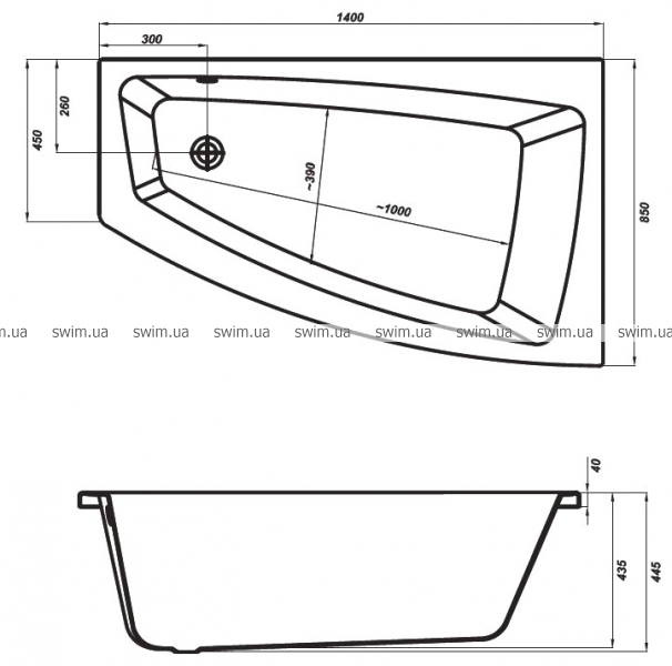 Ванна асиметрична права Cersanit Lorena 140x85 см
