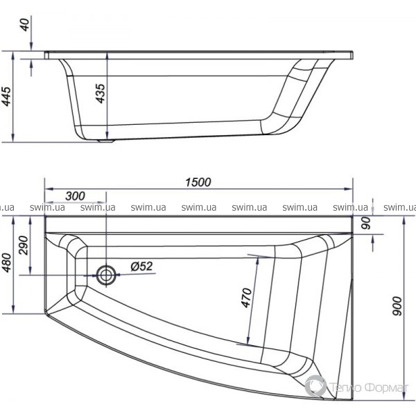 Ванна асиметрична права Cersanit Virgo MAX 150x90 см